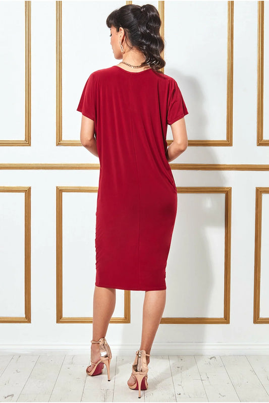 SLOUCHY SHORT SLEEVE MIDI DRESS WITH ROUND NECK